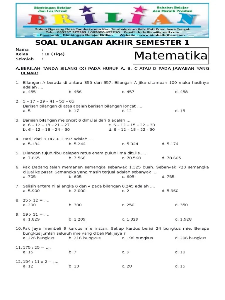 Soal matematika kelas 5 sd lengkap dengan kunci jawabannya ini bisa menjadi referensi bagi orangtua, siswa dan guru dalam membimbing peserta didik.